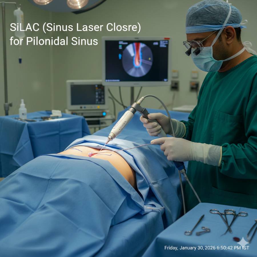 Pilonidal sinuses (near the tailbone) used to require massive “flap” surgeries. With SiLaC, we clean the sinus cavity and use the laser to collapse the tract. This results in a tiny scar and avoids the need for months of wound packing.